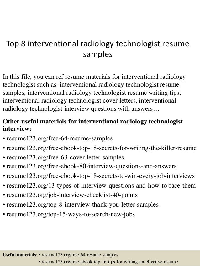 Interventional Radiology Technologist Resume Samples Qwikresume